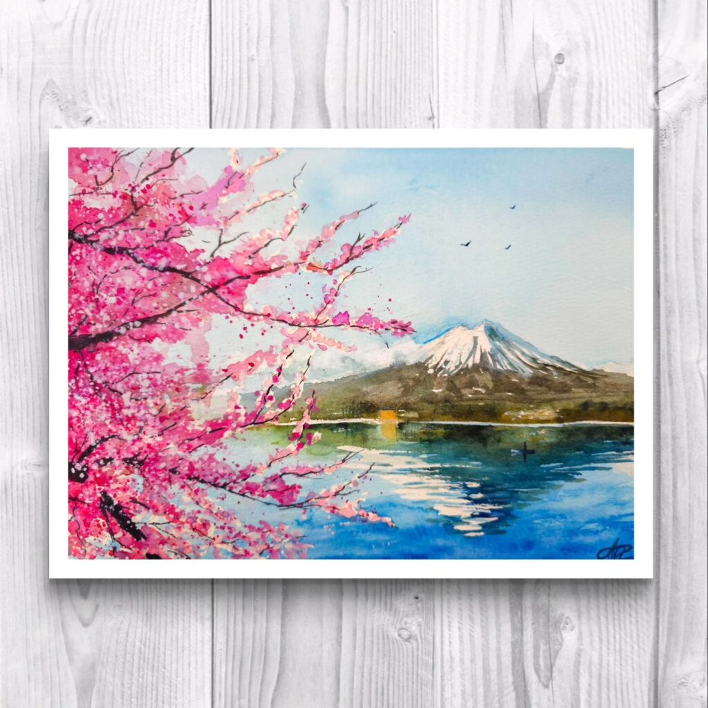 - Akwarela: Magenta w akwareli (np. PR122, PV19) jest wyjątkowo czysta i świetlista. Dzięki gumie arabskiej i wodzie pigment kładzie się cienką, transparentną warstwą, dając lekko chłodnawy, „świetlisty” róż. Akwarelowa magenta jest zwykle bardzo żywa i chłodna w tonie – idealna do laserunków i mieszania. Pigment może być nieco trudny w rozprowadzeniu na sucho (suchy pigment „zasklepia się” – wiele syntetycznych organicznych pigmentów jest hydrofobowych), dlatego producenci często dodają miodu lub gliceryny (jak Roman Szmal) by ułatwić rozpuszczanie. Plama akwarelowej magenty mocno wżera się w papier (trudno ją całkowicie usunąć po wyschnięciu), co z jednej strony utrudnia korygowanie, ale z drugiej – pozwala nakładać kolejne warstwy bez rozmywania poprzednich.